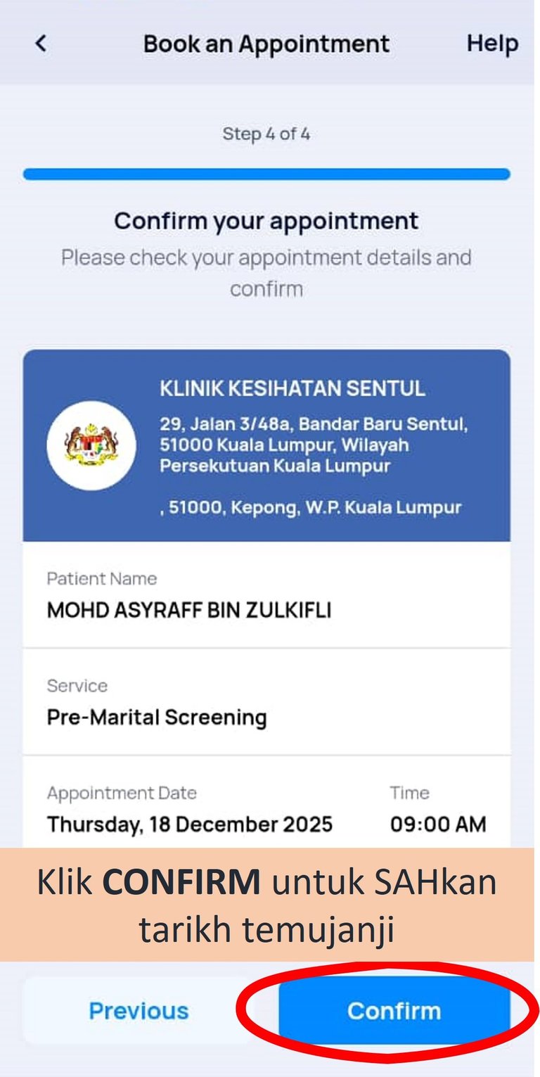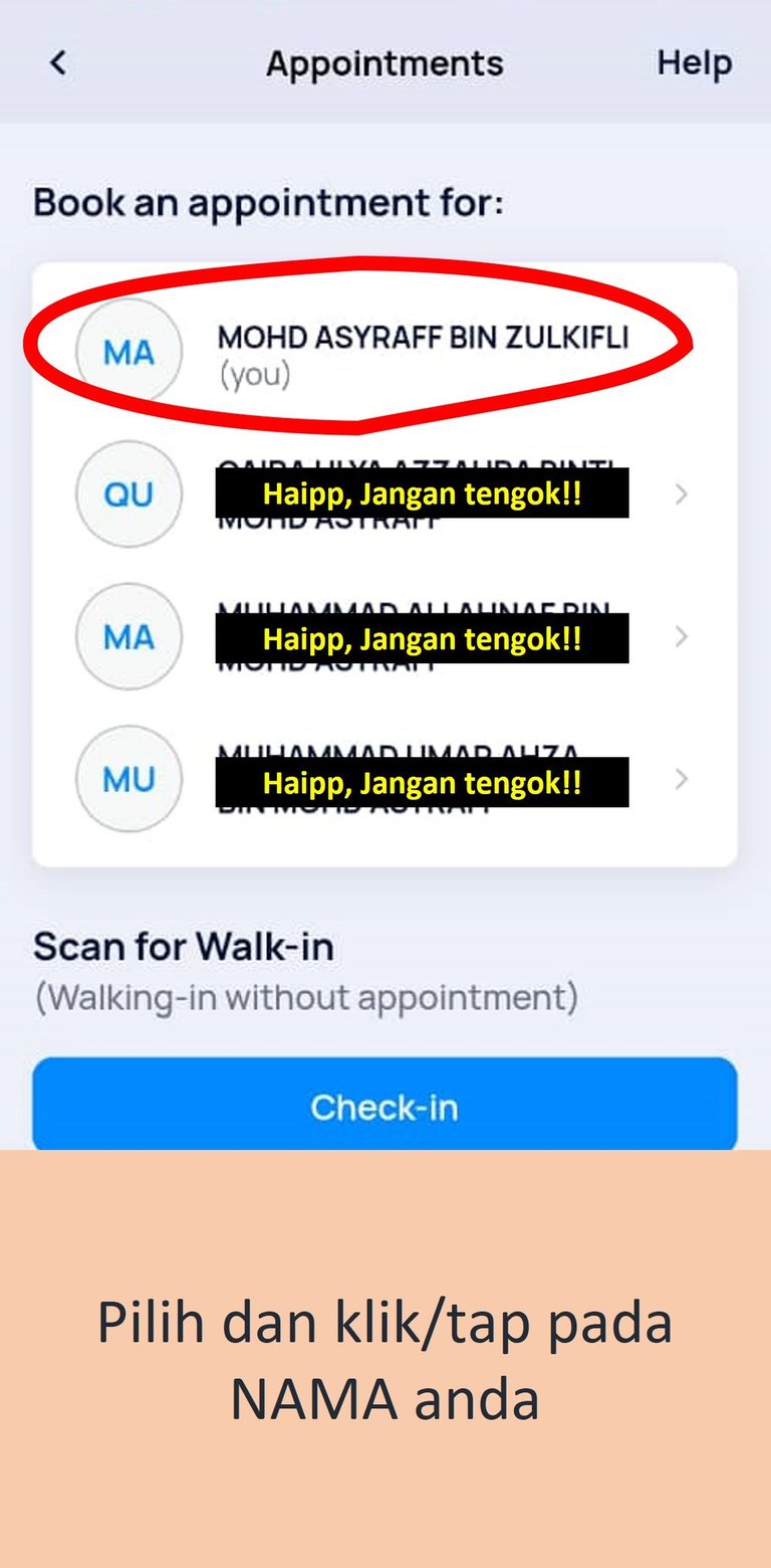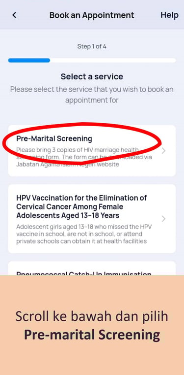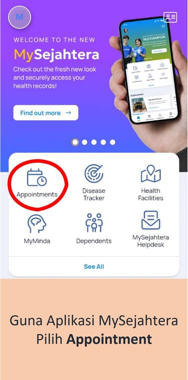 Permohonan temujanji ujian HIV MESTI/HANYA boleh dibuat melalui aplikasi MySejahtera SAHAJA