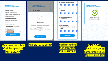 Anda boleh KLIK pada tajuk-tajuk kursus ini untuk lengkapkan PENGESAHAN KEHADIRAN anda.